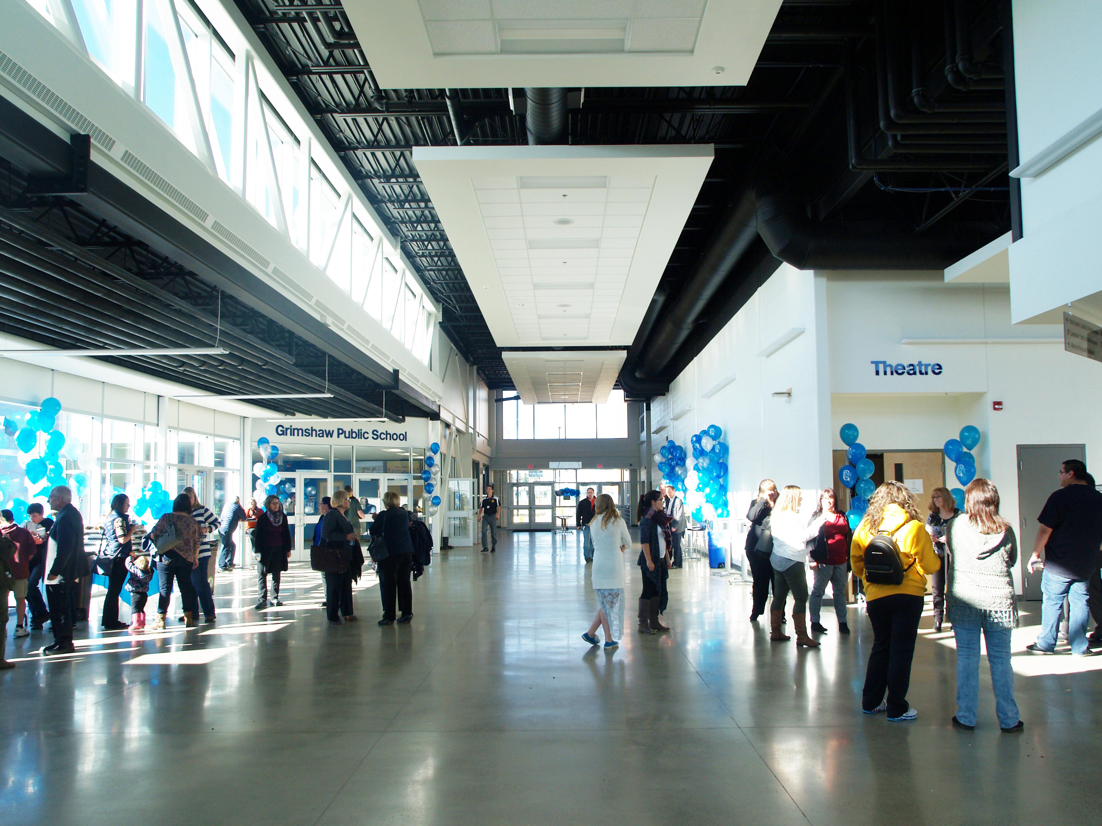 This project involved the design and construction of a new 550 student capacity K-12 school (Grimshaw Jr./Sr. High School and Kennedy Elementary Consolidation) for the Peace River Public School Division and a 350 student capacity K-9 school (Holy Family Replacement School) for the Holy Family Catholic Regional Division. The project was a combined school with shared spaces utilized by students from each school were district and the community, however, each school had separate entrances and spaces that were unique to each facility. The facility was constructed adjacent to the existing Mile Zone Recreation Centre and also involved the construction of a new community library and performing arts space to provide a unique joint-use facility that would act as a true community hub for the Town of Grimshaw.